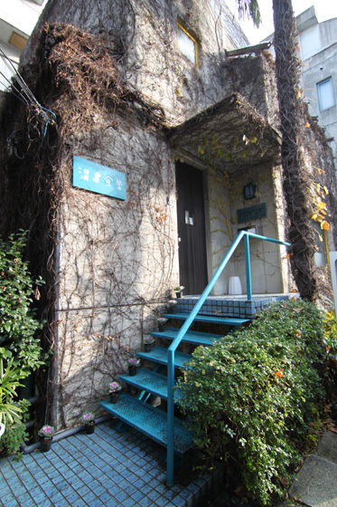 そして、入り口につくばいが置かれた建物もある。ちと新しいんで花街があった頃のかは分からんけど、その頃の小路の雰囲気はそれなりに残っている。往時にこの小路に入ると客はキタキタキタと気分が盛り上がったんだろうなぁ。現在この一角はどうも大体「天庄」の持ち物となっているようだが、恐らく花街が斜陽になった時にまとめて買ったんじゃないだろうか。現在本館が営業している建物の場所も平の井(火保図では平井)という待合そのまんまだっていうか、建物も引継ぎじゃね。